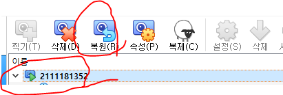 4. 복원할 곳을 클릭하고 목원을 누르면 복원된다.