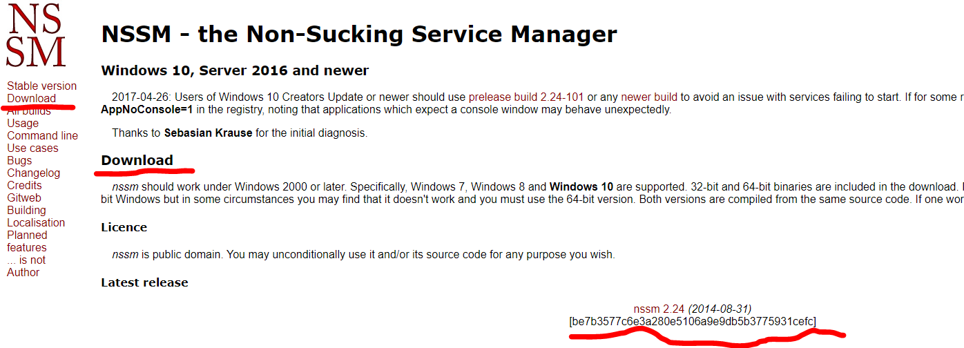 NSSM - the Non-Sucking Service Manager Windows 10, Server 2016 and newer 2017-04-26: Users of Windows 10 Creators Update or newer should use prelease build 2.24-101 or any newer build to avoid an issue with services failing to start. If for some reason you